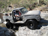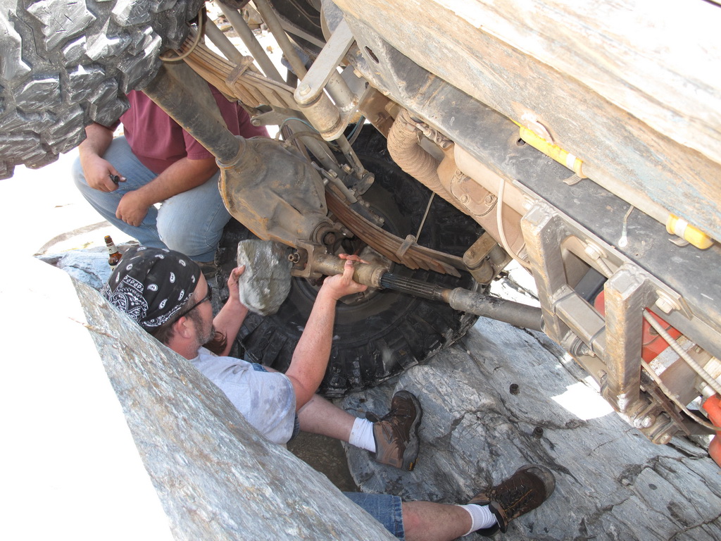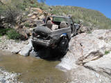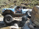 Brandon and Justin (he was driving) both fell into the firehole and we had to turn around. I lost a body panel, Brandon broke his t-case in half...