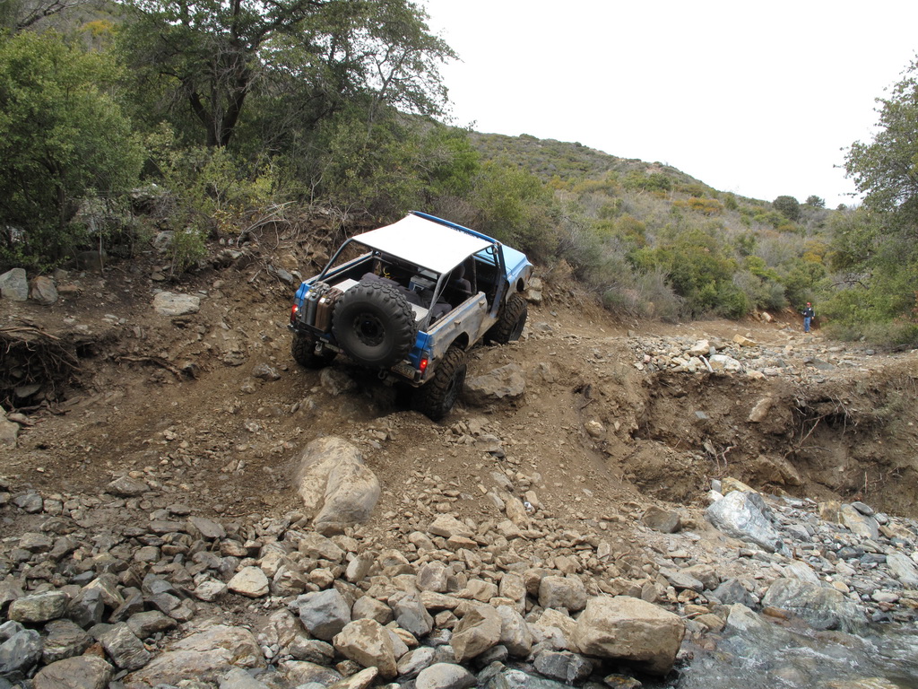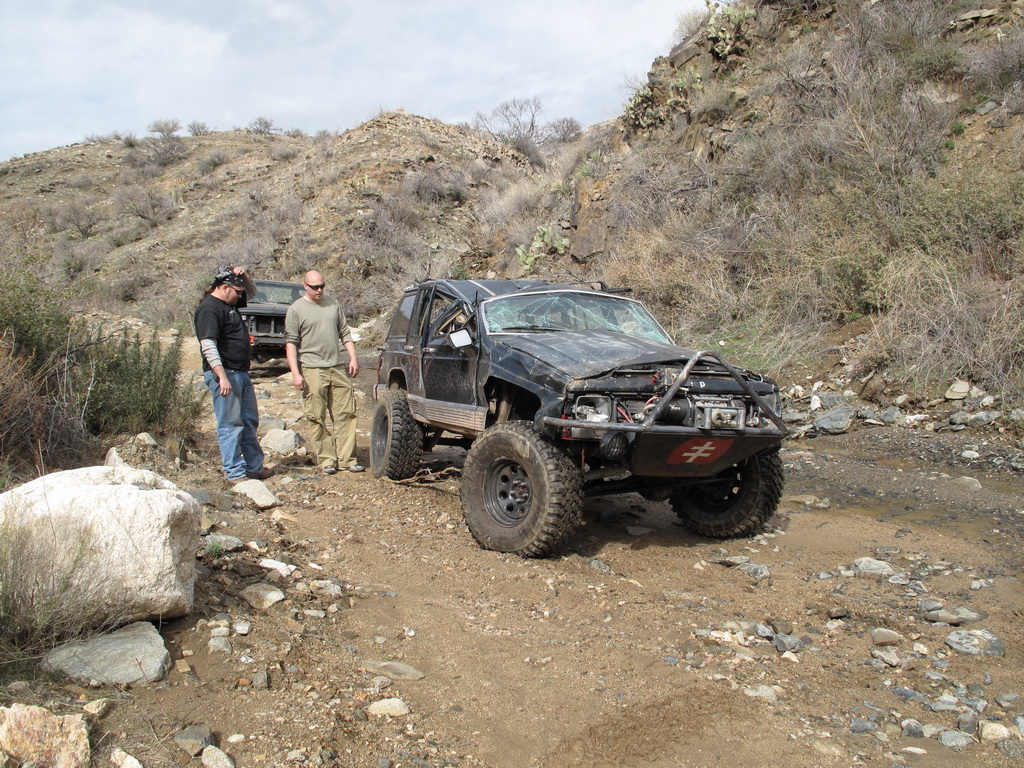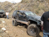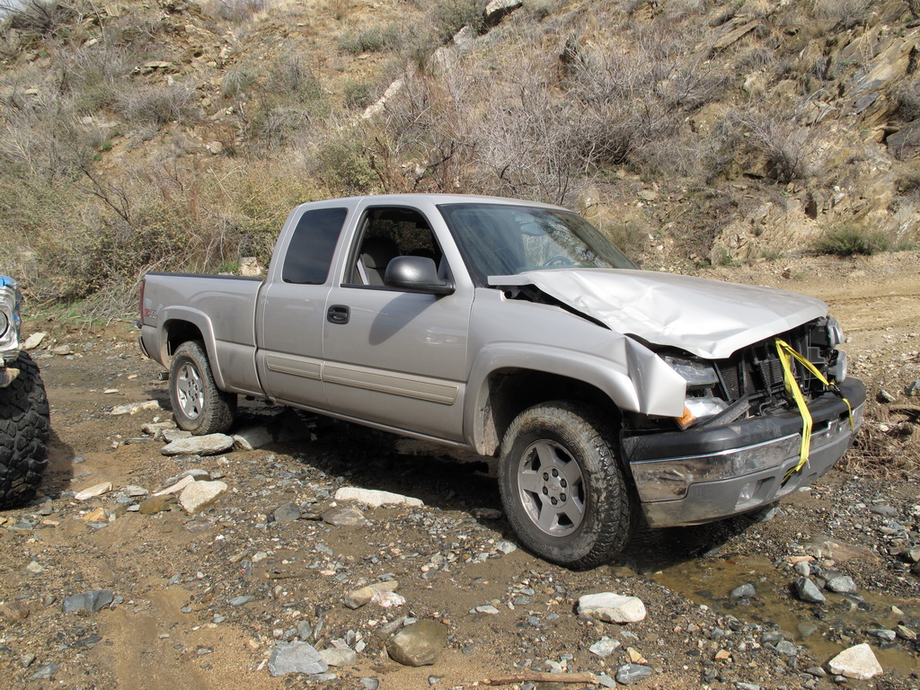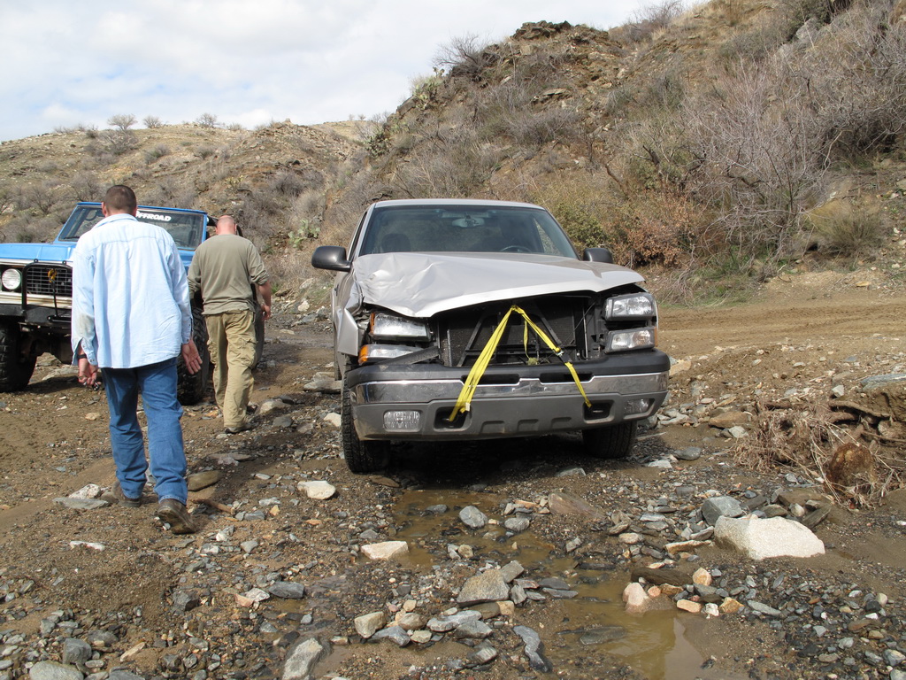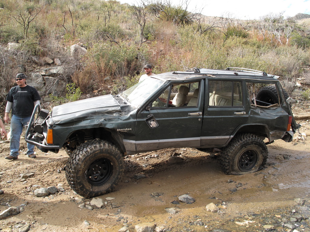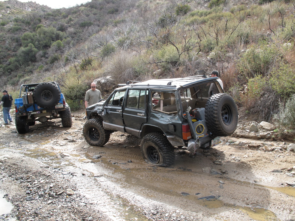 We happened across a Cherokee and Silverado that did not follow proper winching technique. The Silverado got stuck so the Cherokee got in front of him and hooked up his winch cable. He put the Cherokee in park and put some rocks in front of the tires. He then began winching the Silverado while he was standing between the two rigs. He heard a POP come from his rig and it started rolling down the hill (probably the parking pawl). It then proceeded to run over the Silverado and tumble down an embankment. Somehow nobody was injured (he jumped out of the way luckily). We stopped on the way back down the hill to pick up the pieces of his jeep that were strewn across the hill.