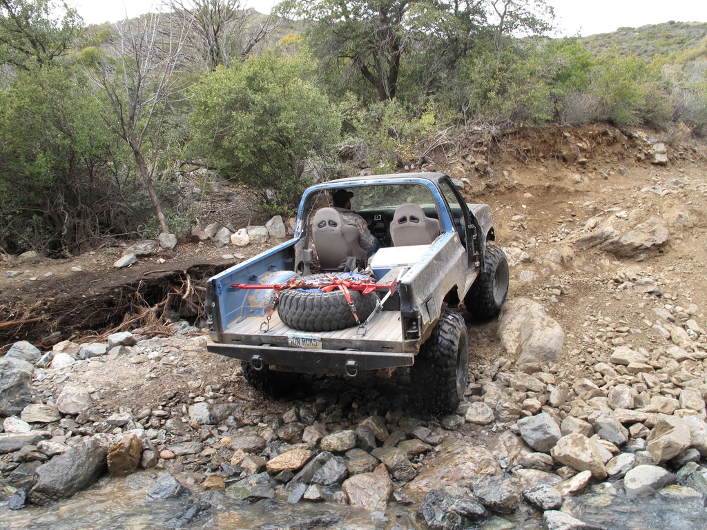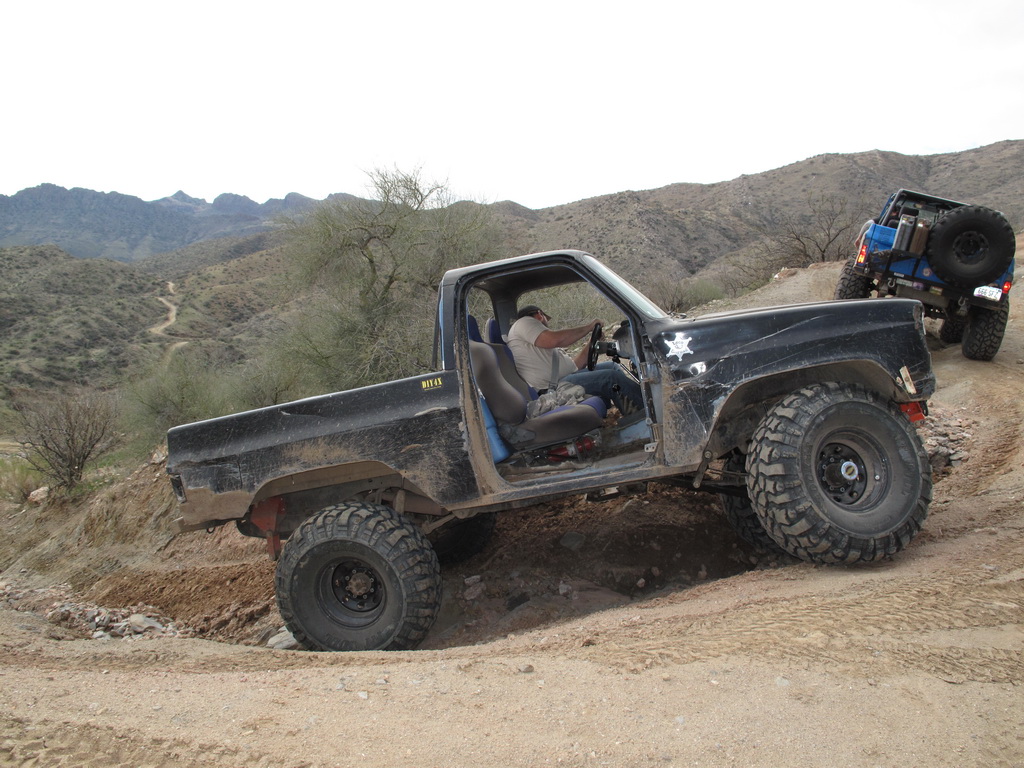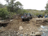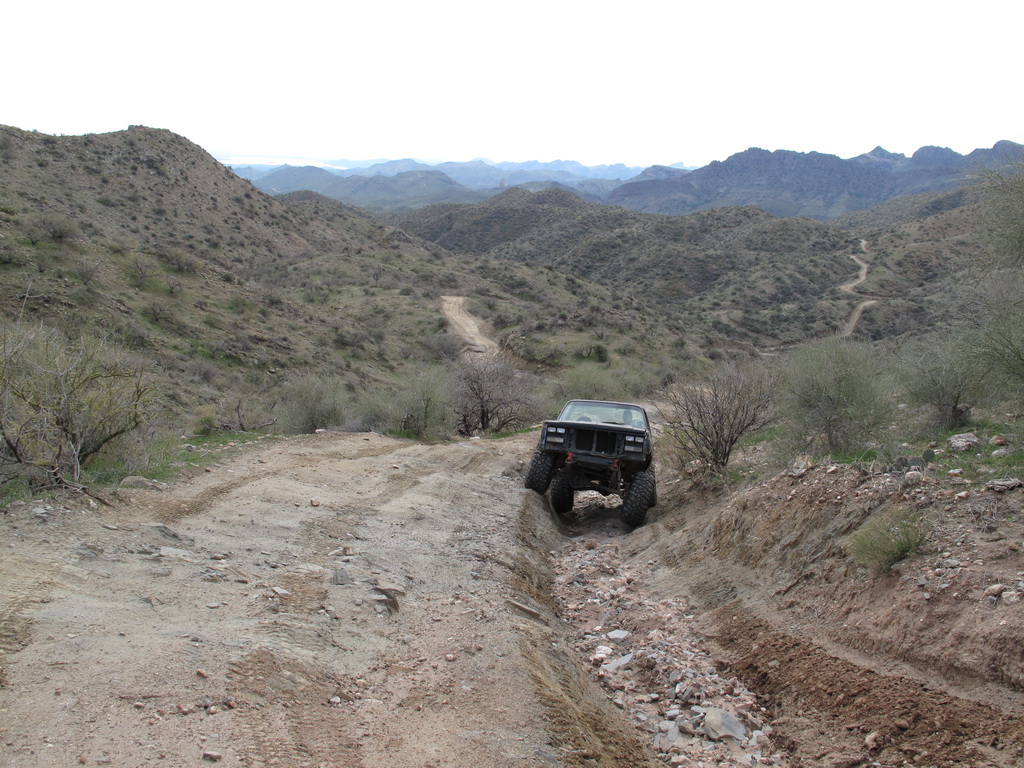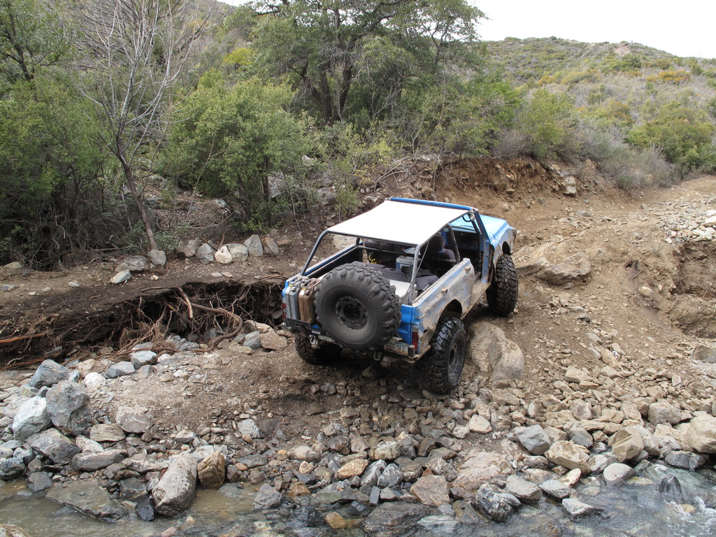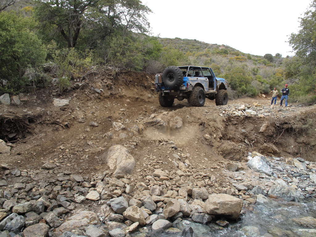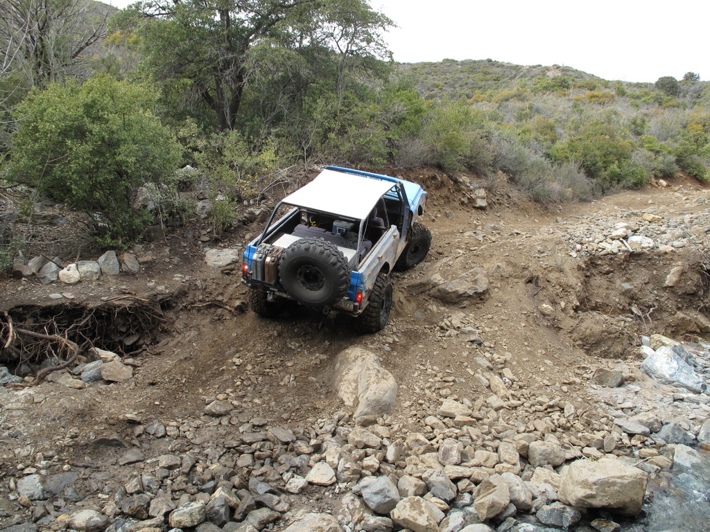 We happened across a Cherokee and Silverado that did not follow proper winching technique. The Silverado got stuck so the Cherokee got in front of him and hooked up his winch cable. He put the Cherokee in park and put some rocks in front of the tires. He then began winching the Silverado while he was standing between the two rigs. He heard a POP come from his rig and it started rolling down the hill (probably the parking pawl). It then proceeded to run over the Silverado and tumble down an embankment. Somehow nobody was injured (he jumped out of the way luckily). We stopped on the way back down the hill to pick up the pieces of his jeep that were strewn across the hill.