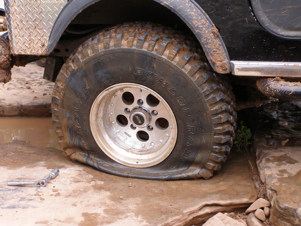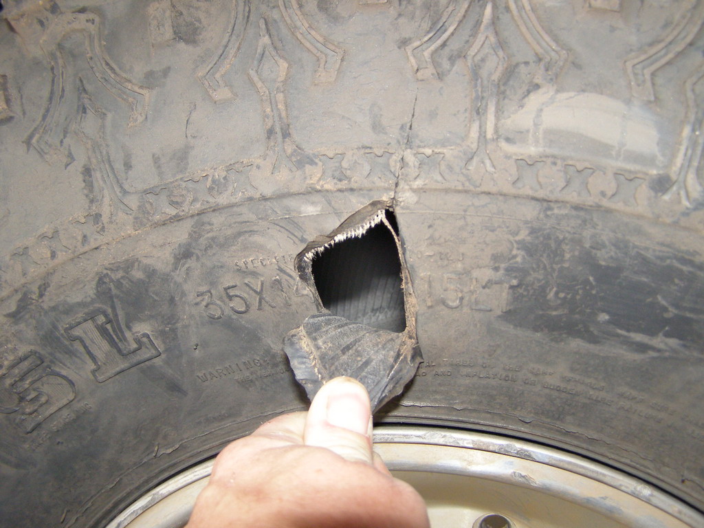 I snapped a picture of my tire carnage before I got it replaced, big hole:
