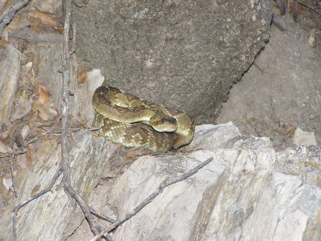 "Snakes on the Trail" (Green Mojave rattlesnake we saw on our way out)