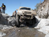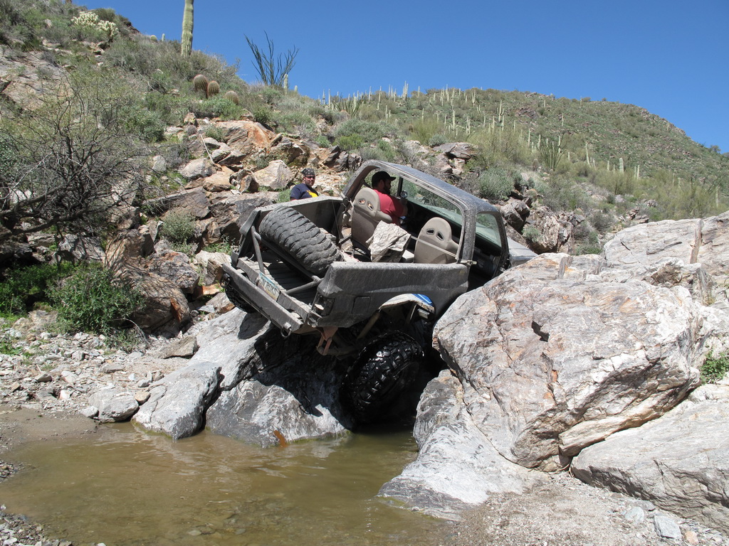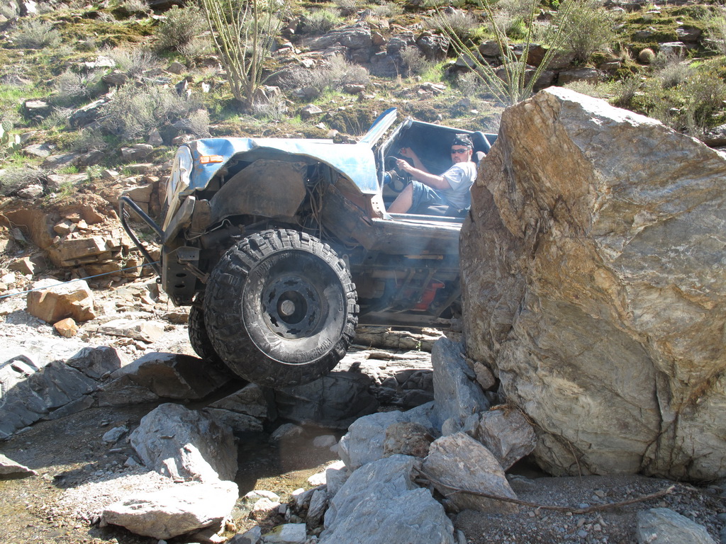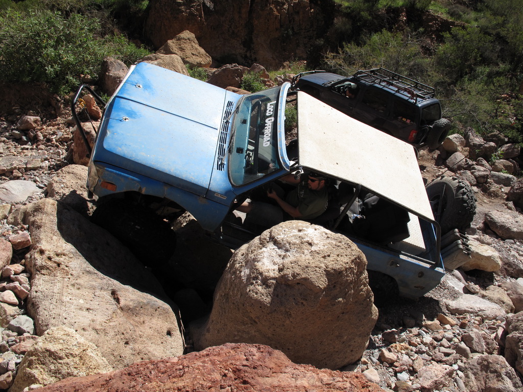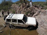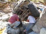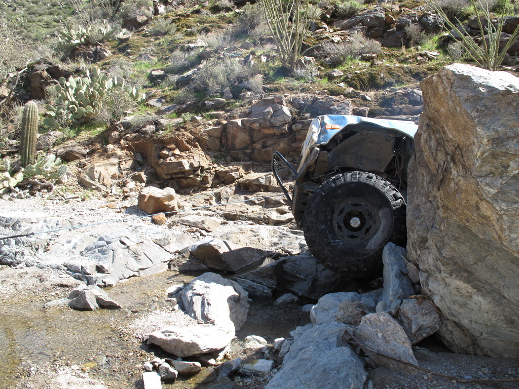 Brandon and Justin (he was driving) both fell into the firehole and we had to turn around. I lost a body panel, Brandon broke his t-case in half...
