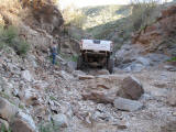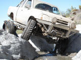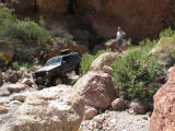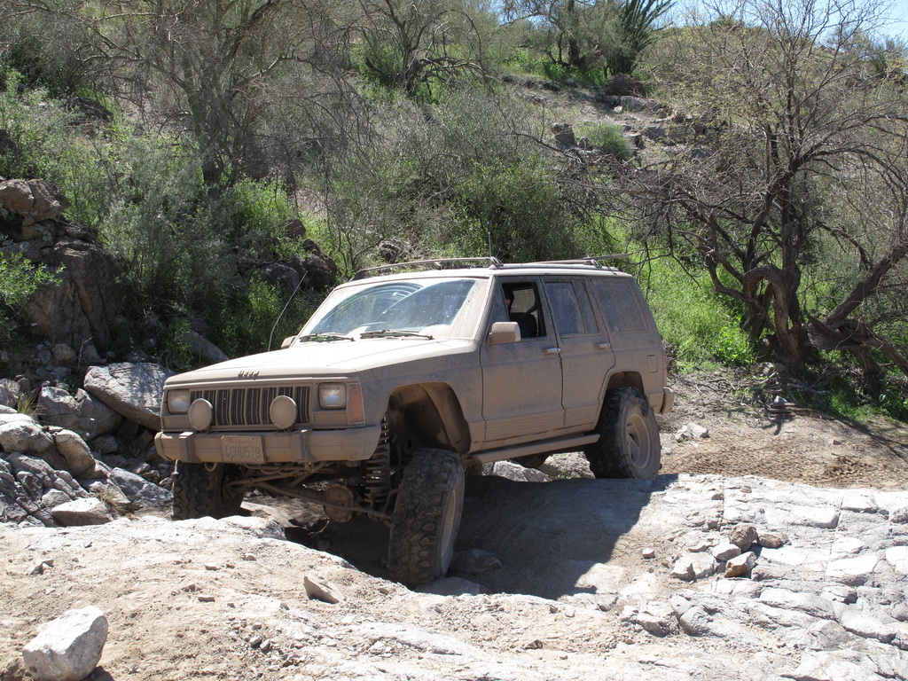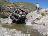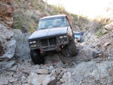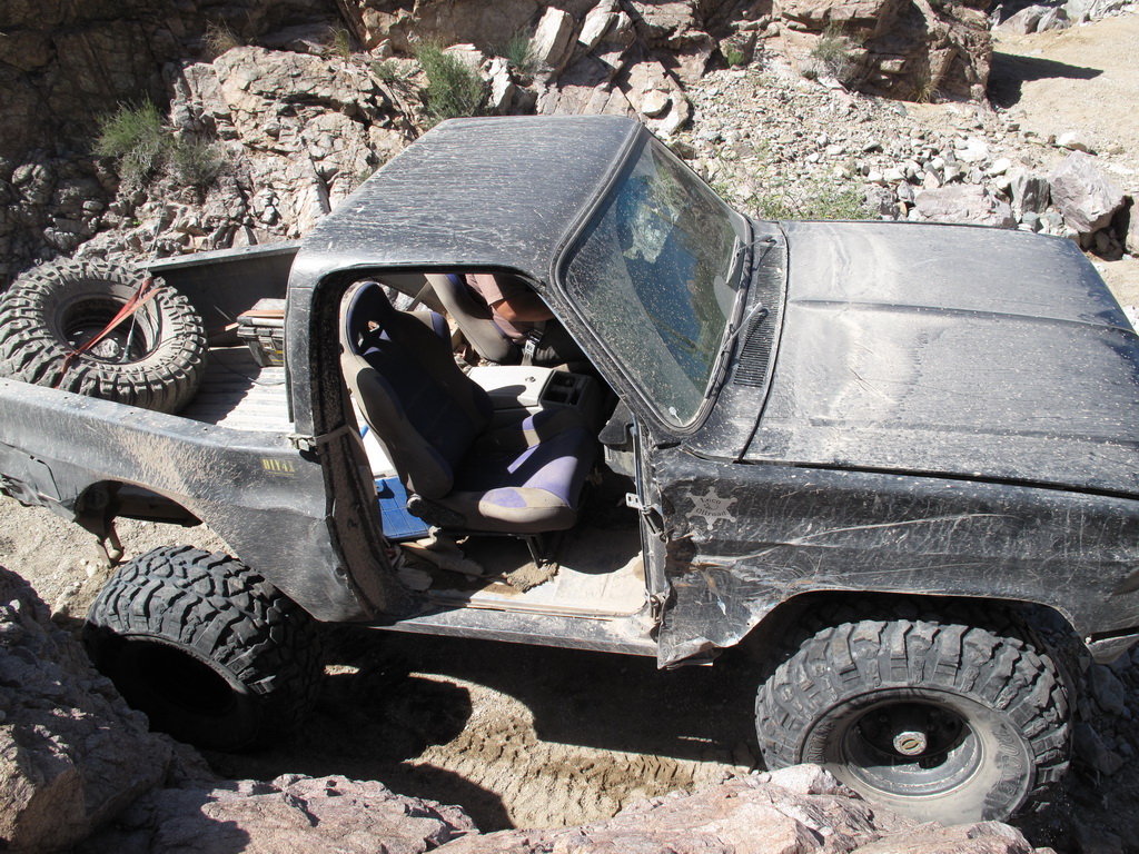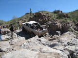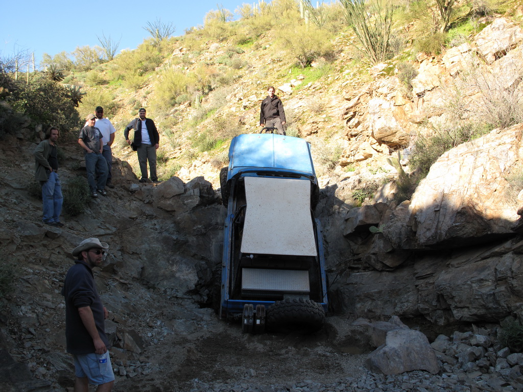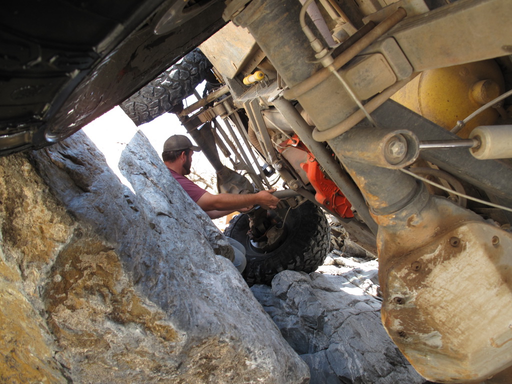 Brandon and Justin (he was driving) both fell into the firehole and we had to turn around. I lost a body panel, Brandon broke his t-case in half...